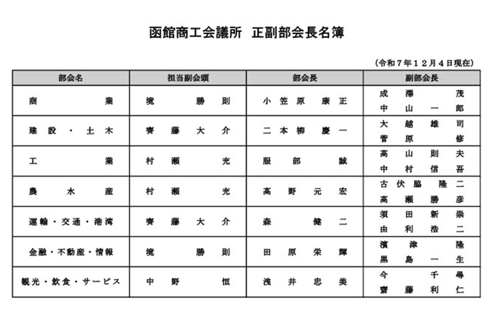 函館商工会議所では、会員が営む事業の適切な改善発達を図るため部会を運営しています。